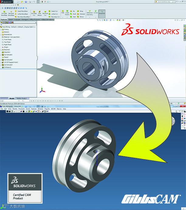 Cimatron集团旗舰产品之一的GibbsCAM是专业的零件加工编程解决方案,功能涵盖从简单的车削编程到复杂的多任务车铣复合编程。SolidWorks+GibbsCAM解决方案可以大大提升企业的设计与加工能力。作为Cimatron公司的旗舰产品GibbsCAM软件,它可以充分整合企业的产品加工工序,合理发挥数控机床应有的效率,方便用户进行多工序和多工位编程操作,可以完成各种复杂零件的编程操作。同时让辅助操作协助用户完成加工的全过程,进而实现真正意义上的多工序复合。