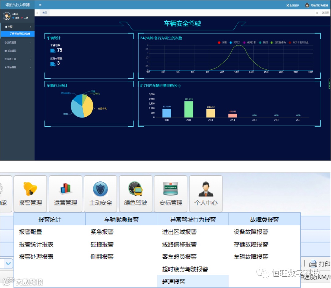 恒旺数字研发的防疲劳驾驶系统,防超速、防疲劳、防碰撞 三防功能立足于煤矿实际需求,通过影像分析、GPS定位、信息传感等技术,判断驾驶员状态,对疲劳驾驶、违规驾驶、风险行为等做出预警,以避免因驾驶员状态异常导致的事故发生。并对接边坡监测、车辆人员定位、视频监控三大系统数据,满足行管部门对矿方的车辆人员作业监管,避免重复投资、资源浪费。