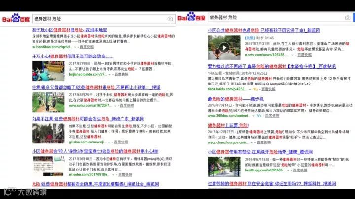 当然,也不能说磕伤过我就是不安全的,但是大家可以做一个特别简单的实验。打开浏览器,搜索“健身器材”,再加一个“危险”,然后你们就会收集到网上无数的关于体育健身器材是何等危险的信息,但是我不知道为什么我们的城市仍然热衷于建这样的体育健身器材。