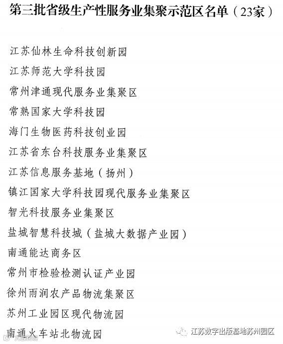 获得第三批省级生产性服务业集聚示范区的名单