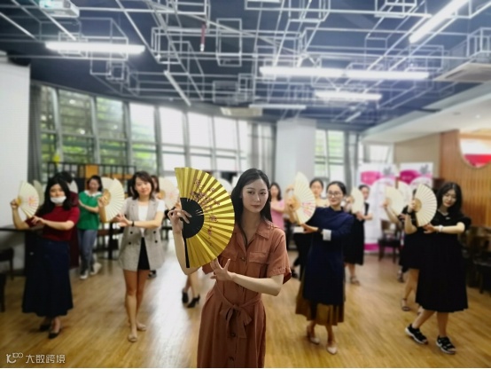 展精巧,流艺韵,通过参加前面2次苏扇雅集的女性职工们,提笔画扇面、巧手穿扇骨,成功创作出了一把精巧雅致的苏州折扇。为让大家更好地运用折扇,本次雅集特邀苏州籍优秀青年昆曲演员洪舒窈老师为大家分享昆曲里的“扇子功”。