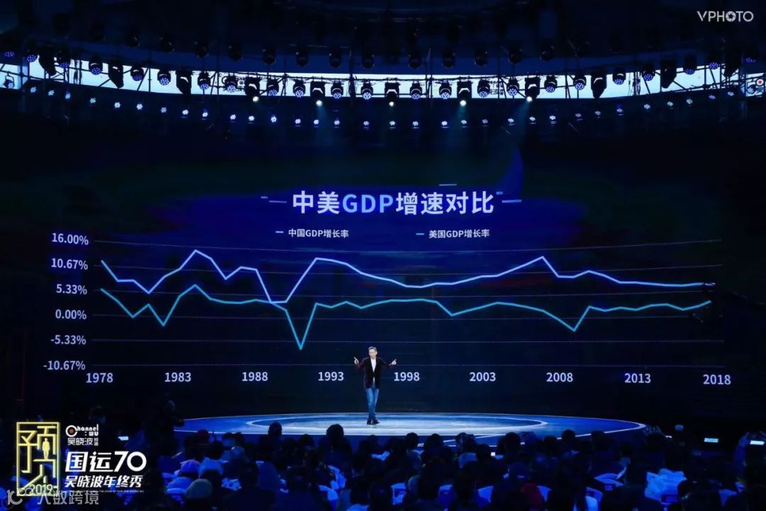 在过去的四十年里,我们看到,中国的GDP增长率平均在9.2%左右,美国在3%左右,如果这个曲线一直往下画,不用拿出计算器,十二年到十五年之间,中国的经济总量就会超过美国。
