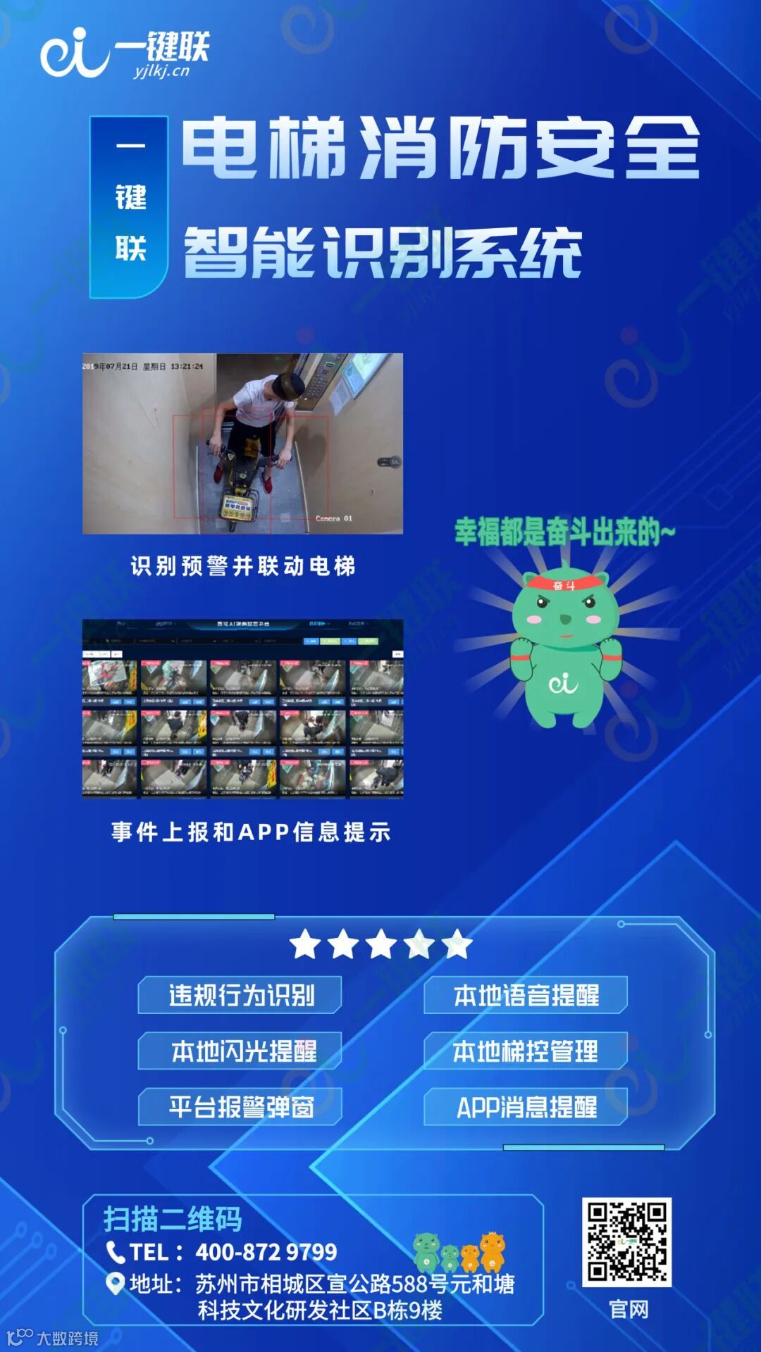 1.智能梯控阻车系统:该系统是一键联为提升社区安全而设计的解决方案,专门针对电瓶车违规进入电梯的问题,通过AI智能识别技术和电梯控制机制的联动,防止电瓶车进入电梯从而造成安全隐患。该系统不仅提高了社区的安全管理水平,也增强了居民的安全意识,为创建和谐、安全的居住环境提供了有力支持。