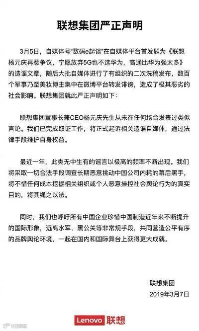 最近,一篇题为《联想杨元庆再惹争议,宁愿放弃5G也不选华为,高通比华为强太多》的自媒体文章,再次将联想推上风口浪尖。
