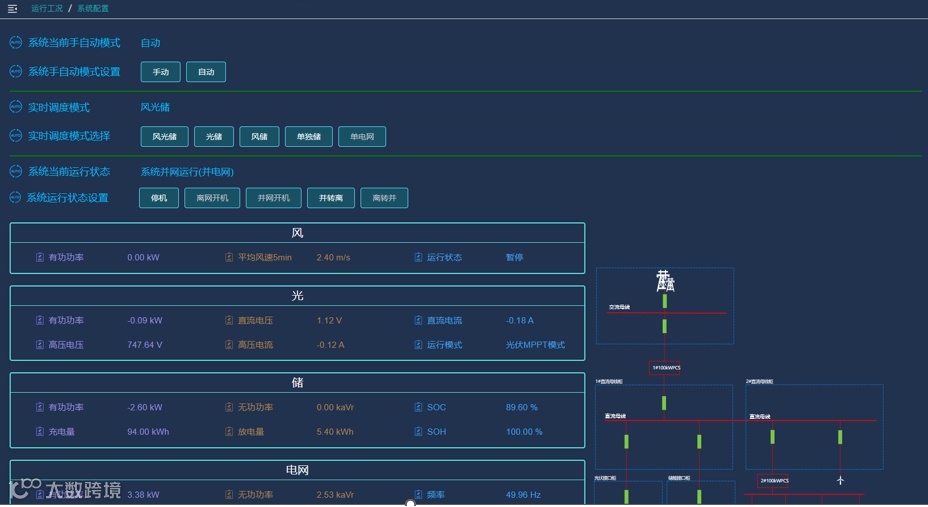 系统设计可满足风光储、光储、风储、单储、单电网五种调度模式,供客户根据实际需求灵活选择。