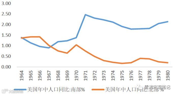 图21:美国南部地区的人口、GDP在70年代后增长迅速