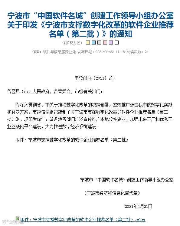《宁波市支撑数字化改革的软件企业推荐名单》