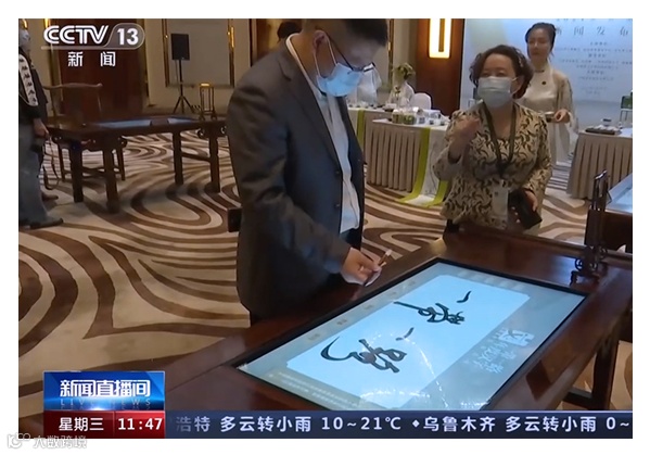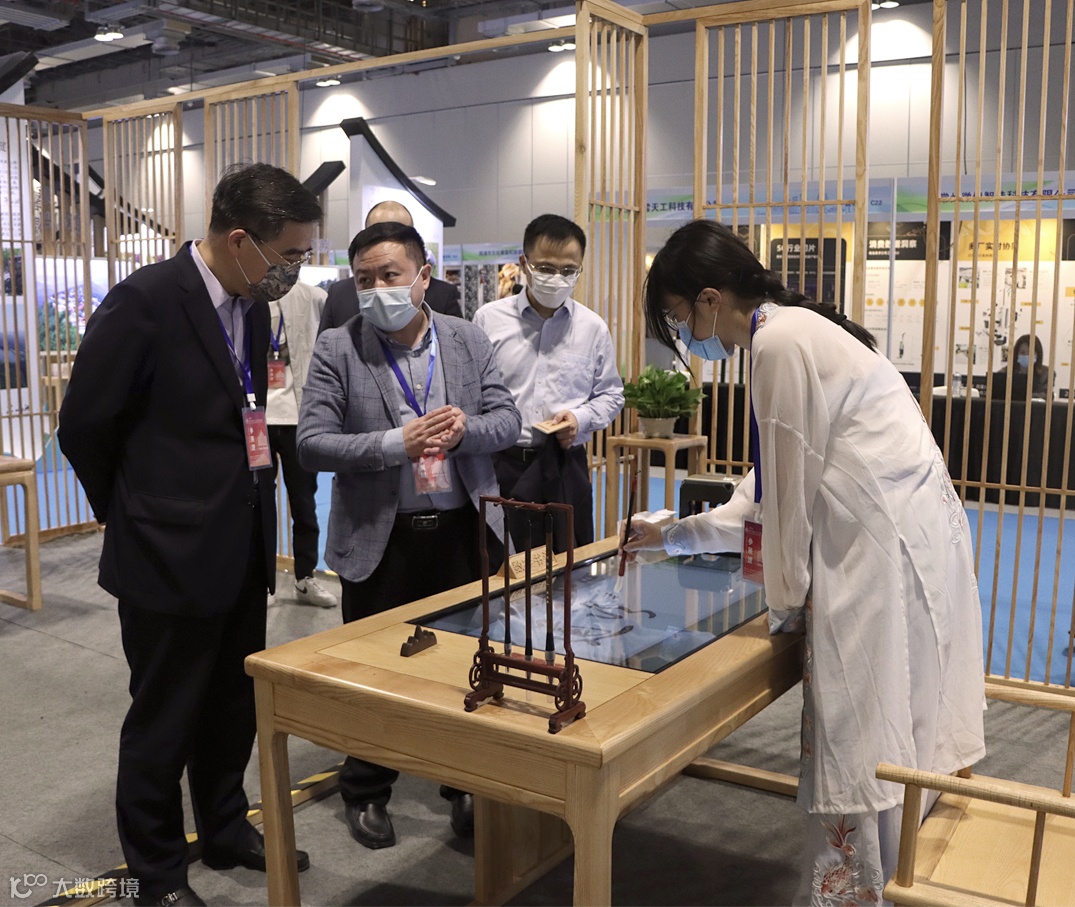 展会现场,工作人员为现场观众表演数字古琴、益智棋桌、数字书法和数字国画的体验过程,充分展现了数字化“琴棋书画”的魅力,吸引来了无数文化爱好者及游客。