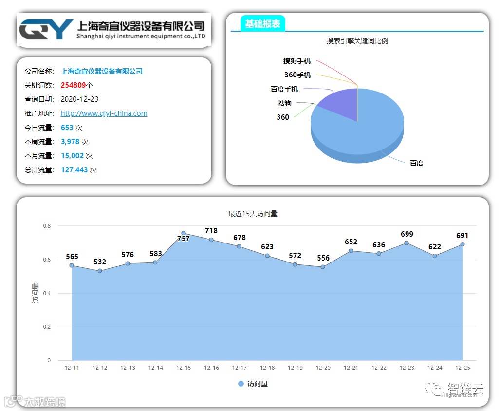 上海奇宜仪器设备有限公司,一家致力于研发并提供包装密封检测、顶空分析、温湿度及压力测量分析领域里的解决方案,产品应用于生物学、制药行业、食品包装行业及环境科学研究领域,以经营包装密封检测仪器和顶空分析仪器为主的公司。在今年11月份,使用智推全网智能获客系统,在线上开展网络营销。