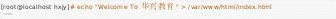 默认网站数据存放在/var/www/html 目录中,首页名称是index.html 。将华兴教育 写入一个文件提换到默认页面