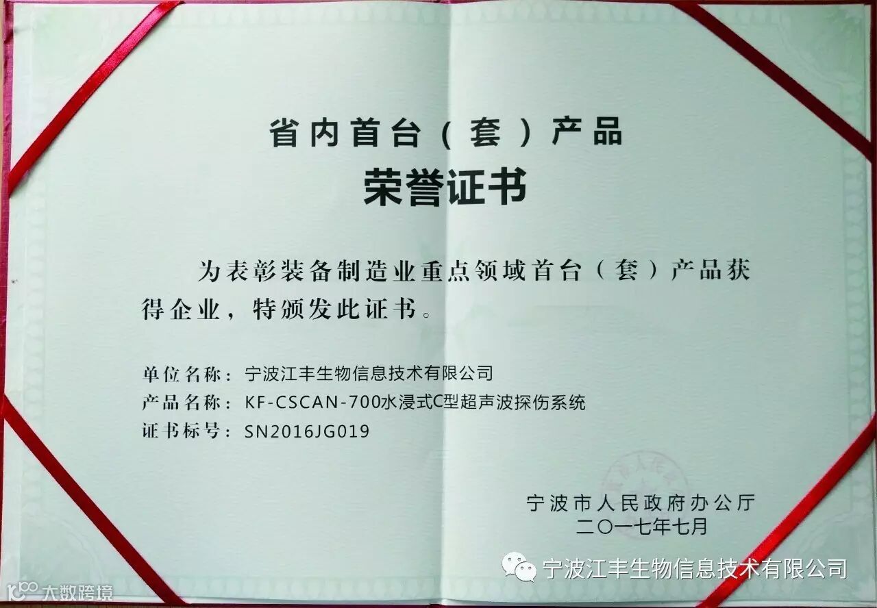 江丰生物KF-CSCAN-700水浸式C型超声波探伤系统通过省首台套认定。