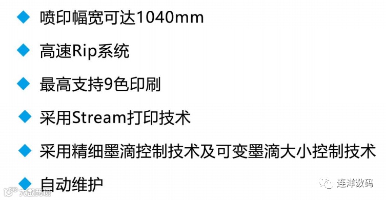 集自动供墨系统、智能负压控制系统及其他功能于一体;每色10L的墨罐容量能满足工业化生产需求。