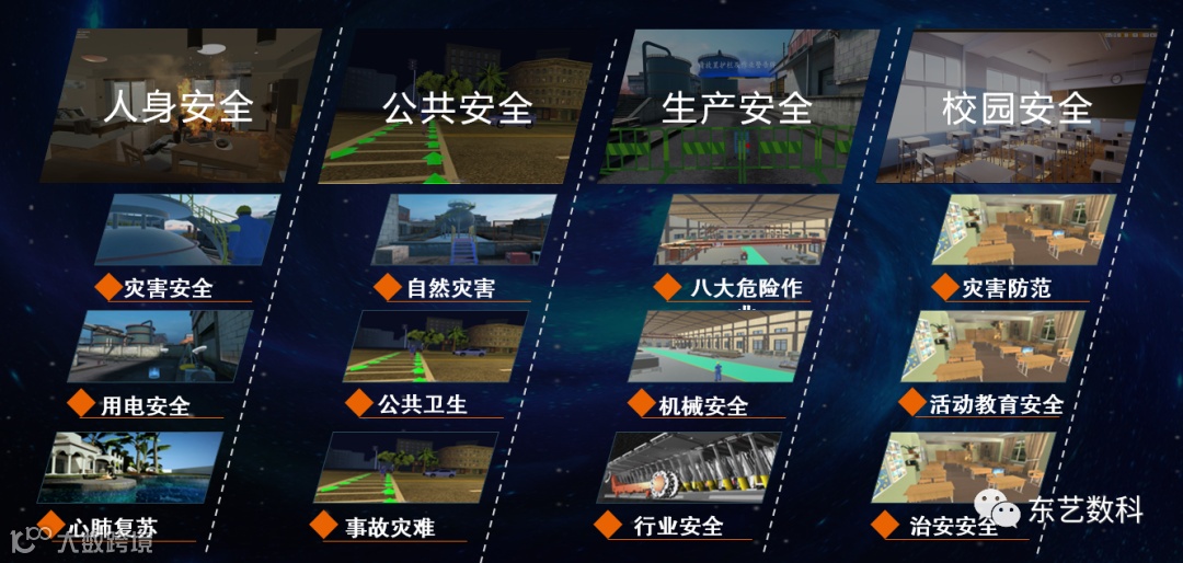 为充分发挥最新数字、信息技术在安全生产中起到的重要作用,山东东艺数字科技有限公司联合近百位安全生产教育专家,遵照GB6441、GB30871等国家标准,打造了集培训、体验、考核、警示于一体的V-sight应急安全管培系统。