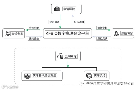 该批设备搭载的KFBIO数字病理远程会诊平台是宁波江丰生物信息技术有限公司完全自主研发的医疗信息管理系统。该系统把传统物理切片数字化,集成显微成像、WEB图像浏览等技术,整合多年病理领域的经验,为省级远程医疗,区域远程医疗,第三方检验远程医疗等提供便捷。