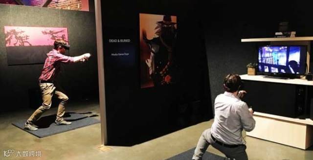 有意思的是,实际上这个边界并不是单纯的线,它看起来像是带刺的铁丝网,与《盖棺了结》的美国西部片风格形成一个整体。也就是说,Oculus的系统是由VR体验的开发商进行外观方面的设定的,以保证整体风格的一致性,另一方面,Vive的系统则是由用户自行设定自己喜欢的风格。