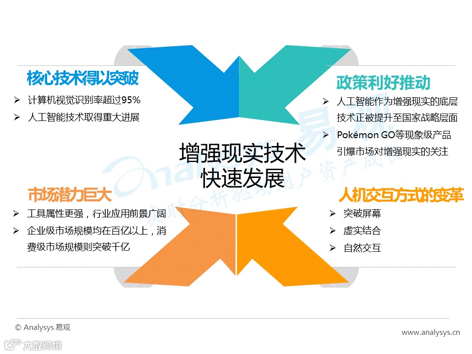 核心技术突破,政策利好,行业应用广泛和交互方式的变革推动增强现实技术快速发展。