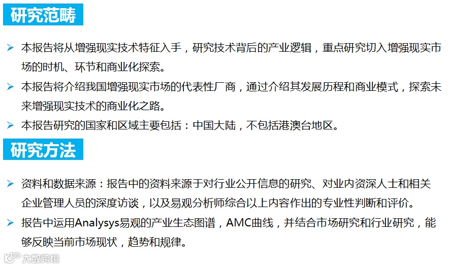 本报告将从AR技术特征入手,研究技术背后的产业逻辑,通过对国内AR市场代表性初创厂商的研究,探讨未来AR的商业化之路。