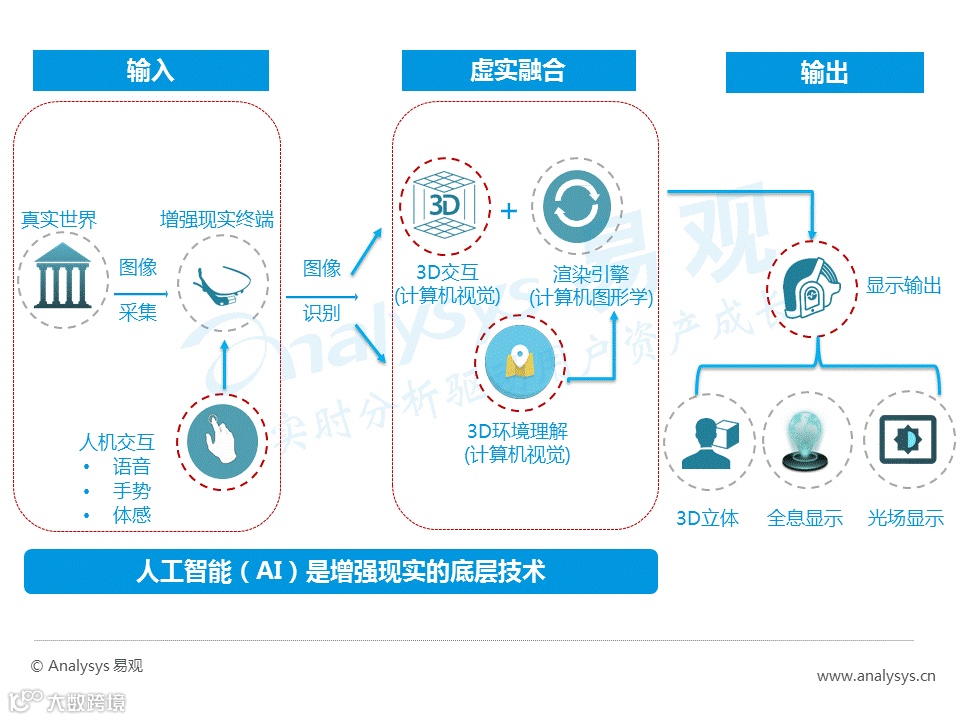 增强现实的核心在于人机交互,而作为其底层的人工智能技术则起着重要作用。增强现实(AR)可以认为是人工智能(AI)的一个可视化呈现和交互方式。