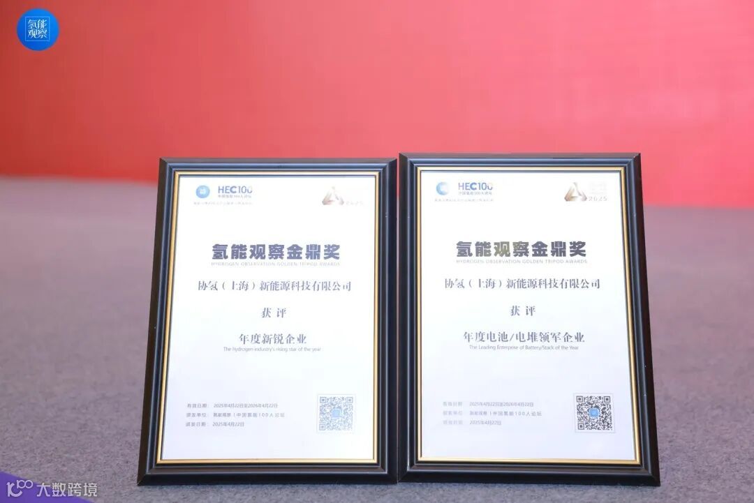 在4月22日举行的CHEC2025第五届世纪氢能与燃料电池大会上,协氢新能源一举夺得"2025氢能产业金鼎奖"两大奖项:"年度新锐企业"和"年度优秀电池/电堆企业"。次日,在2025第二届绿氢产业创新发展大会上,公司再获殊荣,荣膺北极星杯“氢能行业影响力企业”称号。