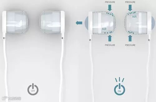 不需要按任何按钮,通过耳机也可以关闭或打开音乐。耳塞管道内置入了空气压力传感器,将耳塞塞入耳朵时,受到压力,即会开始播放音乐。而将耳塞取下,压力消失,耳机将自动断电播放器,从而关停音乐。