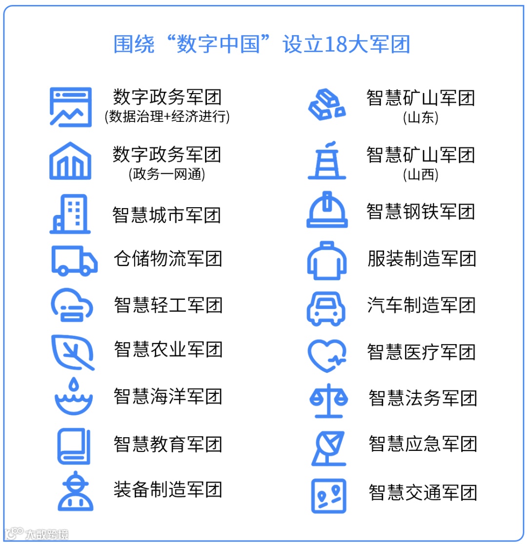 在组织结构方面,为加快落实《数字中国建设整体布局规划》的部署,中国联通在 2023 年发布了第二批面向 7 个行业的 8 大“数字化军团”,累计已设立 18 个针对不同行业的“数字化军团”。