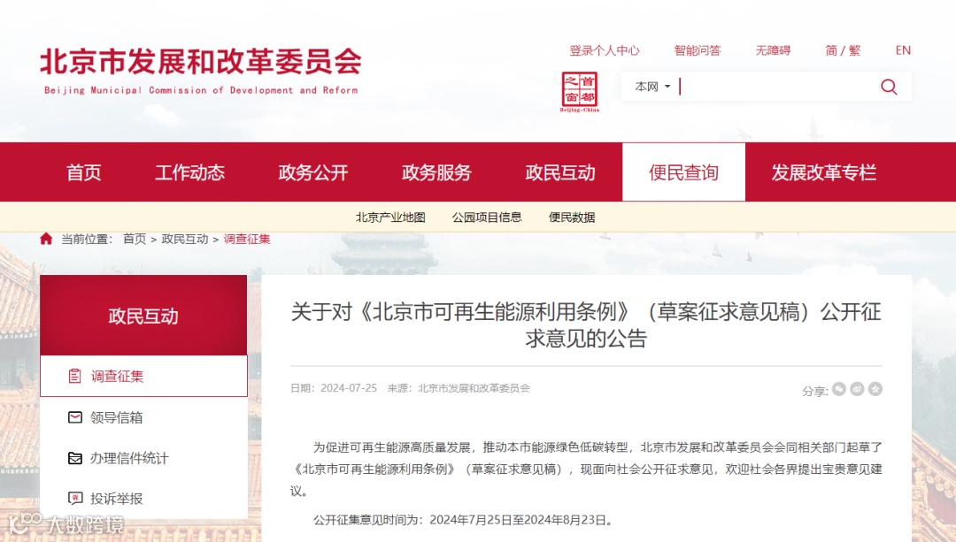 1、7月25日,北京市发改委发布了《北京市可再生能源利用条例》(草案征求意见稿)。鼓励综合利用分布式可再生能源、新型储能、新能源汽车和可调节灵活负荷等,发展微电网、虚拟电厂等智慧能源项目。支持建设以可再生能源为主,多能互补、多能联供的综合能源项目。
