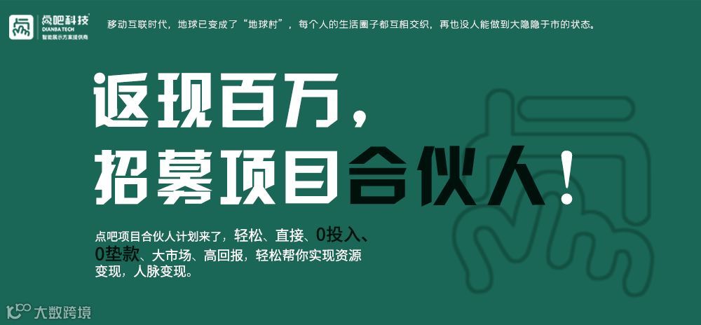 返现百万,点吧招募项目合伙人!