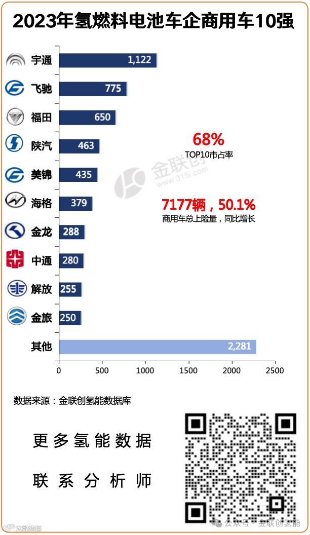导读:2023年氢燃料电池商用车,TOP10企业市占率68%