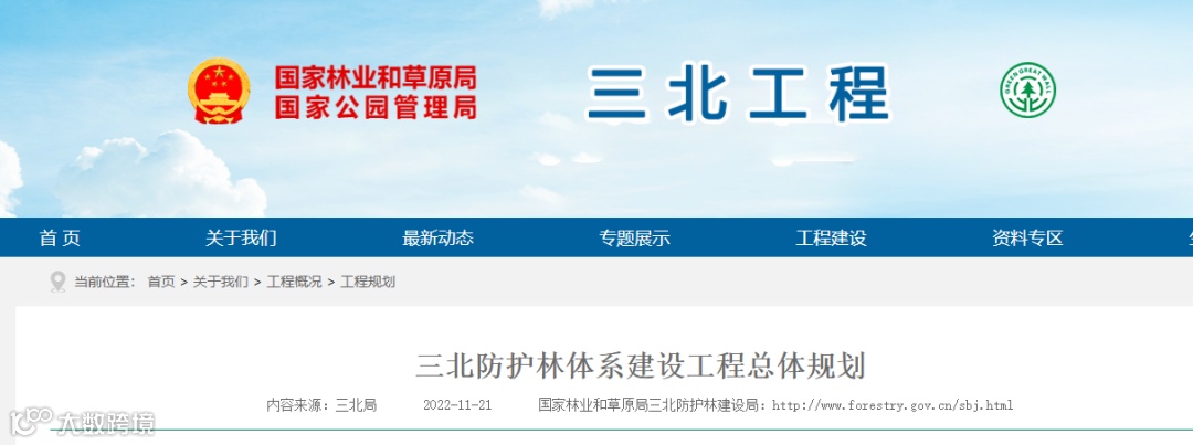 三北防护林工程(Three-North Shelterbelt Forest Program) [24],是指在中国三北地区(西北、华北和东北)建设的大型人工林业生态工程。中国政府为改善生态环境,于1978年决定把这项工程列为国家经济建设的重要项目。工程规划期限为70年,分七期工程进行,已经启动第六期工程建设。