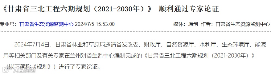 2025年,已争取并落实超长期特别国债资金52.16亿元,持续助力“三北”六期工程建设,助力完成防沙治沙2000万亩以上的年度任务目标。