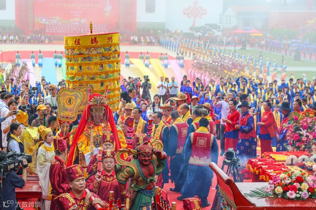 4月20日是农历三月廿三,纪念妈祖诞辰1065周年大会暨春祭妈祖大典于湄洲妈祖祖庙天后广场隆重举行。海内外妈祖宫庙和妈祖文化团体代表、妈祖敬仰者以及社会各界人士逾万人汇聚于妈祖故里湄洲岛,共同续写妈祖文化传承新篇。
