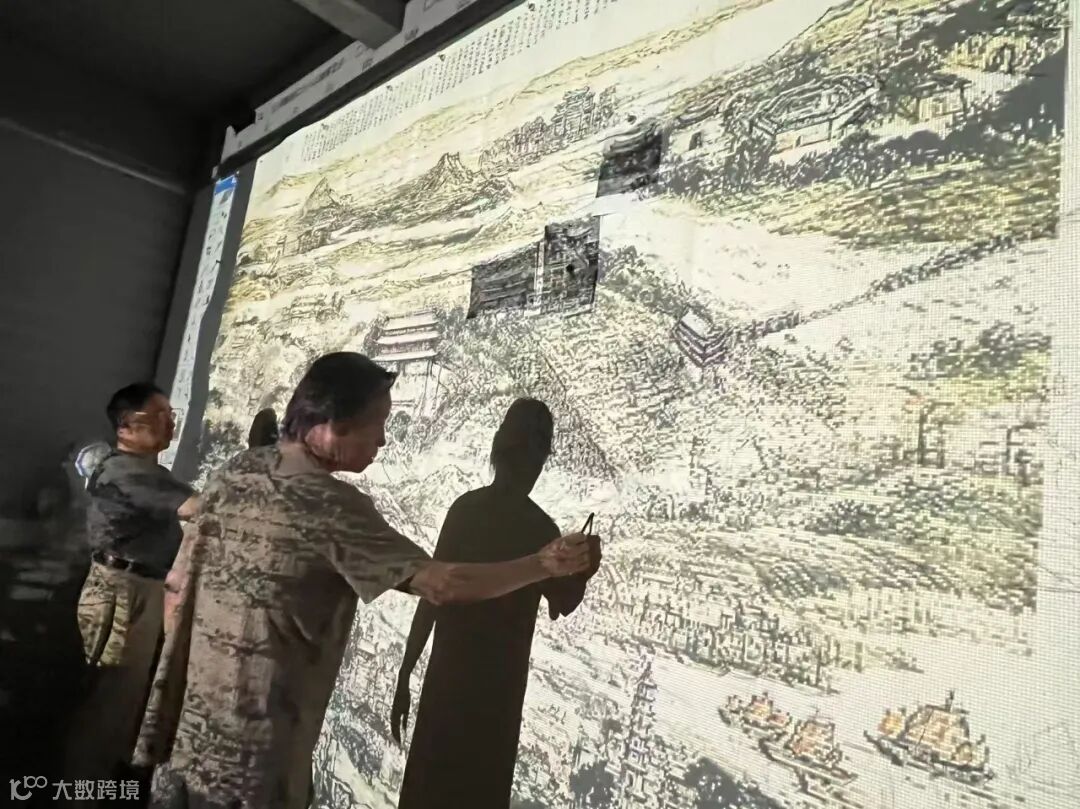 为了真实再现清代潮州的山水风貌,他们在技法上不断探索创新。描绘凤凰山、大南山、桑浦山、莲花山、铜鼓嶂的层峦叠嶂时,并尝试了多种皴法,最终将披麻皴的细腻与斧劈皴的刚劲相融合,皴擦结合,既表现出山石的肌理质感,又凸显出山脉的雄浑气势。在色彩运用上,他们始终紧扣“清代古韵”的主题,摒弃了过于亮丽的色调,经过数十次实验,最终确定以灰黄绿为主色调,这种色调既象征着潮州土地的肥沃与生机,又透露出千年历史的深沉与厚重。为了让色彩更具本土特色,主创人员还将潮州本地的牡蛎壳研磨成粉,调入颜料中,让桑浦山的淡赭色透出独特的光泽,仿佛带着故土的呼吸。渲染韩江、榕江、练江时,在创新方面还采用多层渲染法,先铺淡墨打底,再施石青,最后罩染花青,让三条江水既各有韵味,又和谐统一,远观之,江水仿佛在画中流动,粼粼波光跃然纸上。