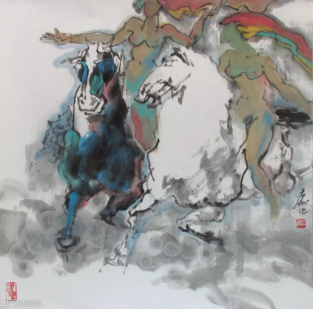 《奔》这件作品里已孕育着一种崭新的风格,既有民族传统又有欧洲的好经验,同时又充分表现了作者个性,既能稳当扎实又能生动潇洒,所谓金铁烟云兼而有之,继承和创造都得到充分的体现。