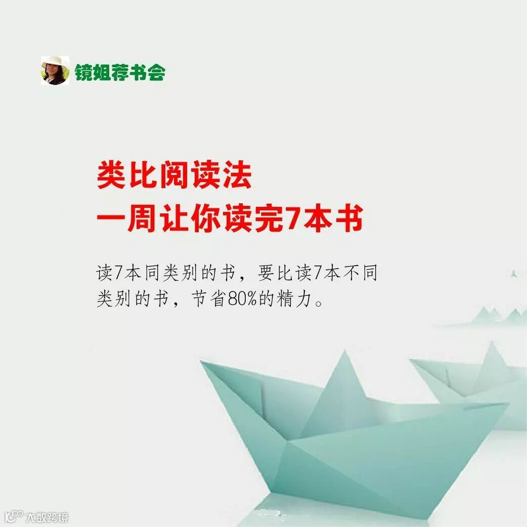 类比阅读法指的是阅读同一个领域的书籍,比如,关于阅读技巧的,如果把阅读技巧类的书籍买来个十几本,我相信你阅读的速度,一定比阅读不是一个种类的书籍要快很多。