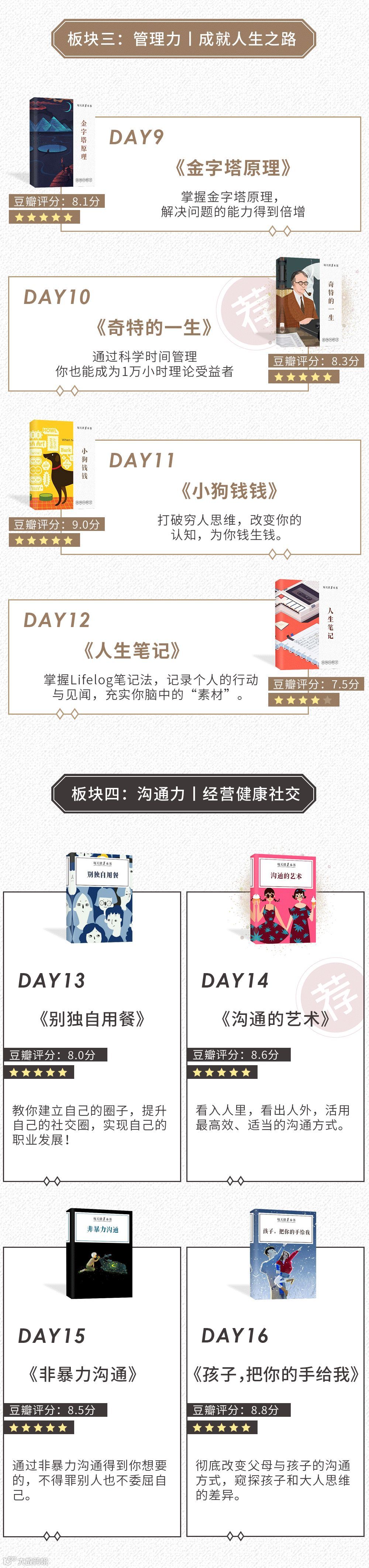 阅读,是个人成长性价比最高的事。读完整本书,就能把作者一生的知识和见识精华领会到生活中。