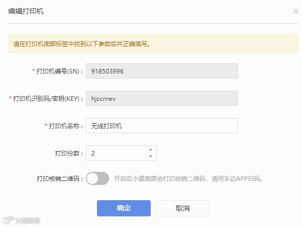 小票打印机支持设置打印多份,默认打印一份。支持设置开启和关闭打印订单核销码,默认开启。