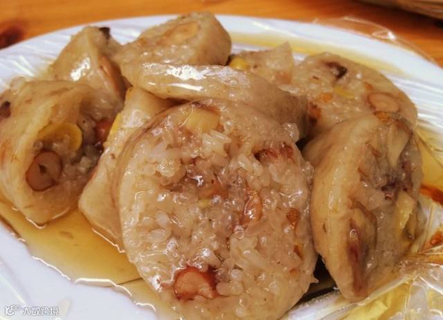 里面包着竹笋、猪肉、香菇、虾米,可好吃了。