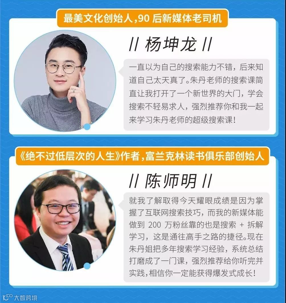 不久前,朱丹老师开设了公开课,吸引了1万多人次的热捧,学员们都纷纷说,搜索这项技能,真的就像给自己突然打开了脑洞的大门。