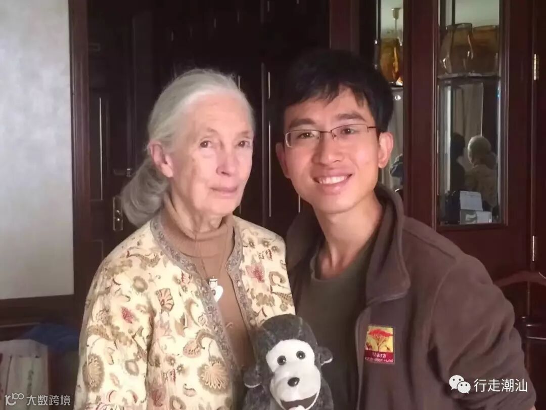 ▲黄泓翔与英国灵长类动物专家、联合国和平大使珍妮·古道尔