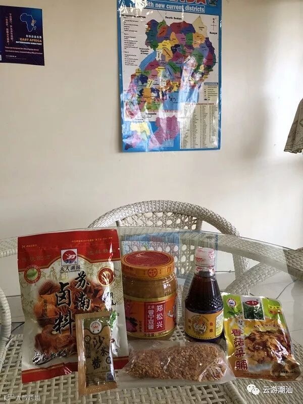 如图1是我2017年带到摩洛哥的调料,图2是这次带到乌干达等国家的调料,这次带出来的调料比上次更加丰富,有潮汕苏南卤味包、普宁豆浆、鱼露、香葱油、沙茶酱、菜脯(萝卜干)。