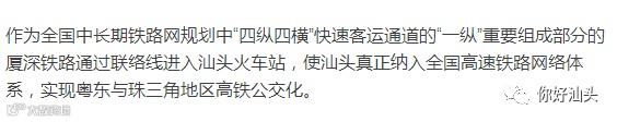 以9条城际铁路线路组成的“两环两射”粤东地区城铁规划方案日前已通过了省发改委专家组评审,在修改完善后将上报国家发改委批复实施。记者在专家组推荐的线路规划方案中看到,汕头火车站在粤东城际轨道中也将处于中心枢纽位置。