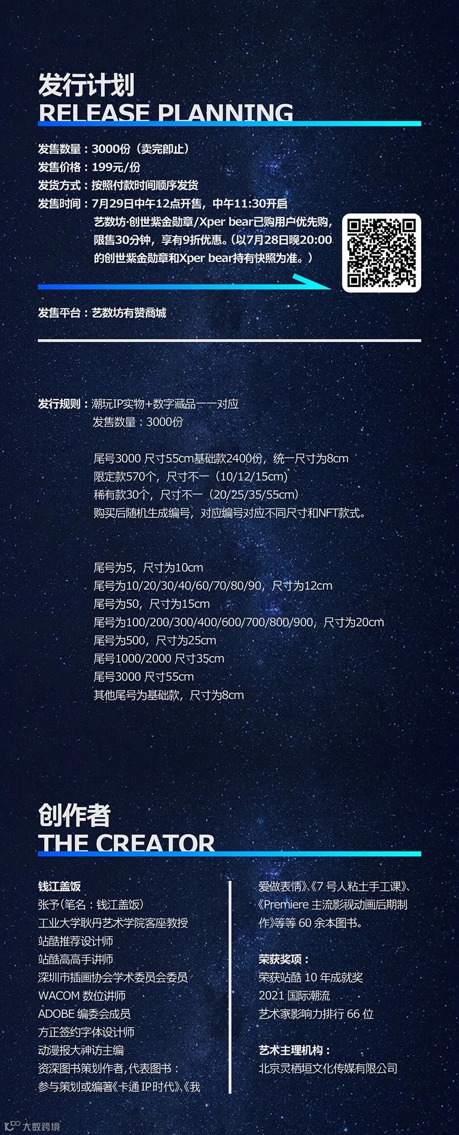 IP-墨仔将于7月29日中午12:00登陆艺数坊商城,中午11:30开启艺数坊·创世紫金勋章/Xper bear已购用户优先购,限售30分钟,享有9折优惠。