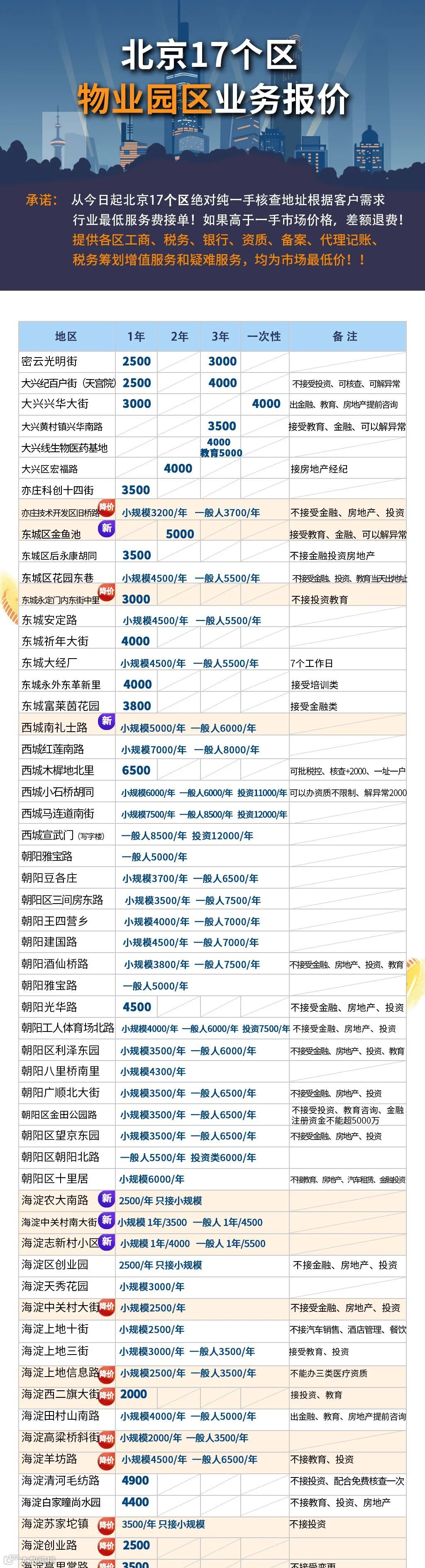 2022最新北京17个区物业园区业务报价!