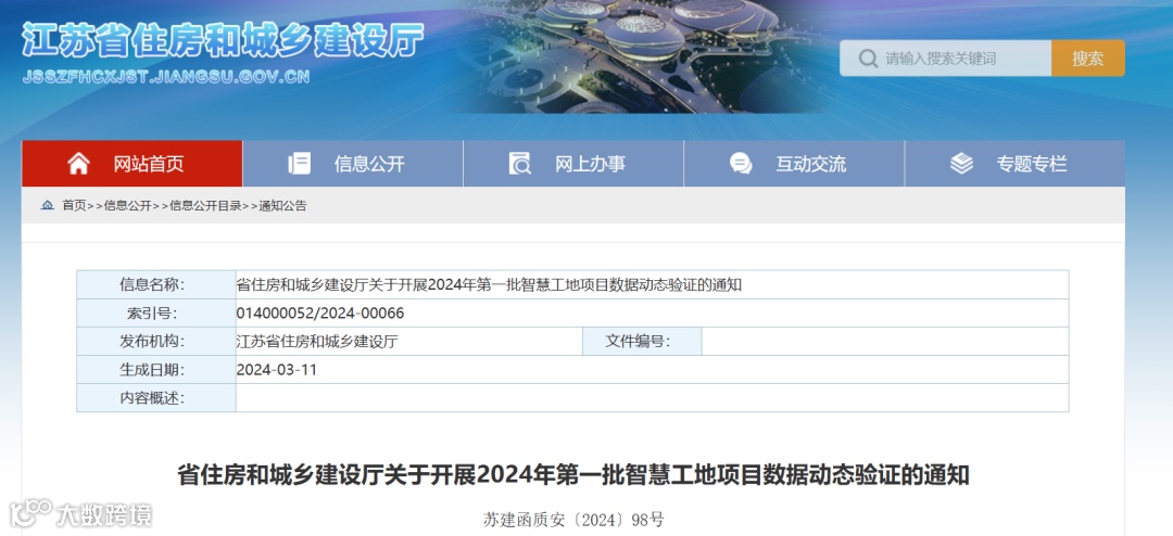 江苏省住建厅开展2024年第一批智慧工地项目数据动态验证