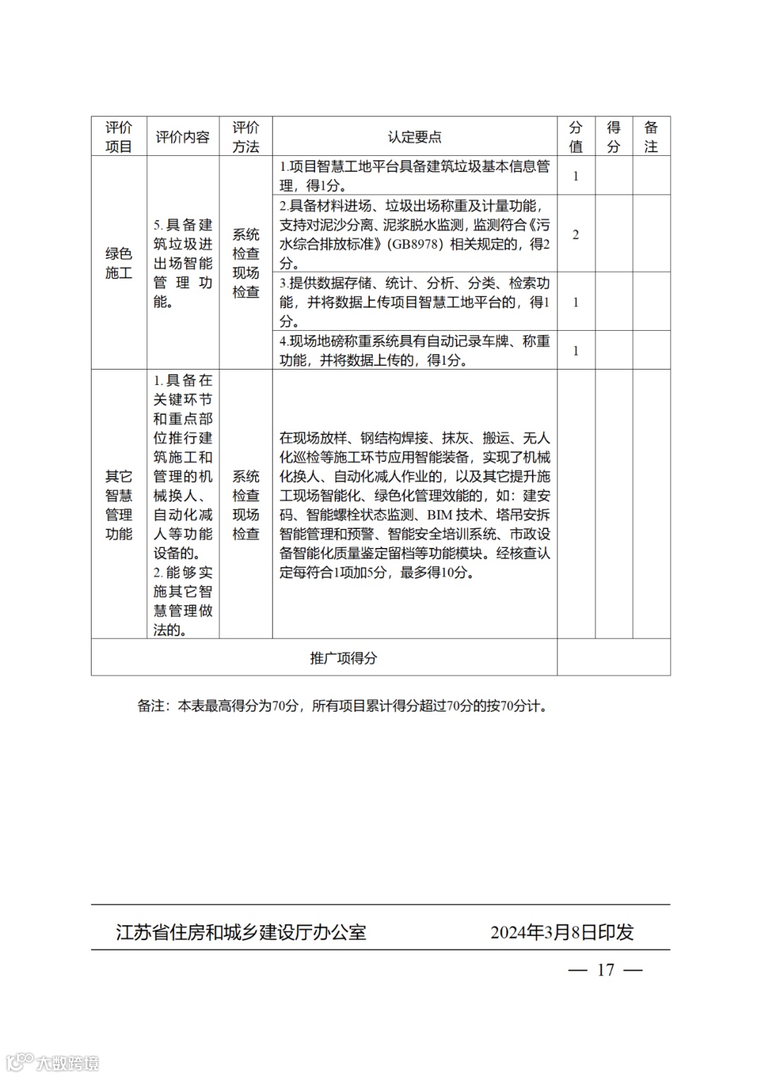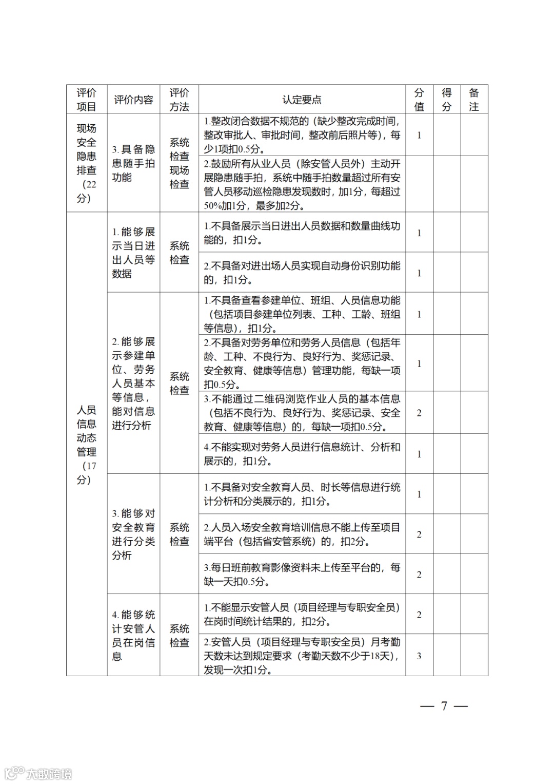 厅推进办将于4月下旬组织专家开展验证复核工作,复核依据《智慧工地项目数据动态验证指南(2023版)》及附表要求,对照“省安管系统”中各智慧工地项目实施情况采取线上打分方式进行。