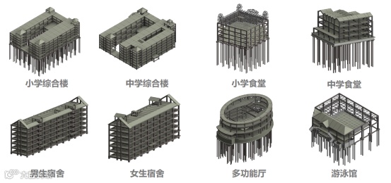 5.专业施工节点复杂:学校项目设置隔震层,其中各种支座单位造价高且造型复杂,为了提高施工单位的施工效率和方便选择分包商。利用BIM技术针对隔震支座以及项目其余大样节点进行高精度建模,利用模型对施工方以及参建各方进行技术交底,帮助其快速理解设计意图,提高施工效率。