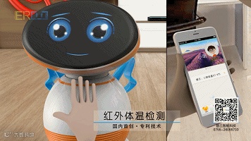 除了早教功能之外,尔多身上还有个红外探测器,还能监测小朋友的体温情况,使父母随时掌握宝宝的身体状况,尔多的监控系统还能让父母远程监控小朋友在家里的情况。
