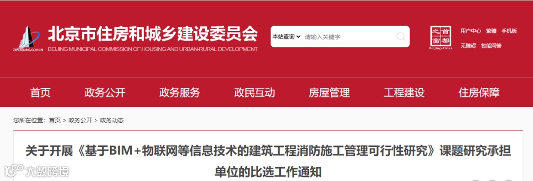 为促进建筑工程消防质量监管数字化转型升级,推进北京市建筑工程消防施工管理数字化、信息化、智能化发展,北京市建设工程安全质量监督总站(以下简称市监督总站)计划进行《基于BIM+物联网等信息技术的建筑工程消防施工管理可行性研究》课题研究工作。该课题研究将通过委托研究单位的方式开展。为确保研究工作质量,采用比选方式确定课题研究承担单位。现面向社会公开征集符合条件的单位参与比选,具体通知如下:
