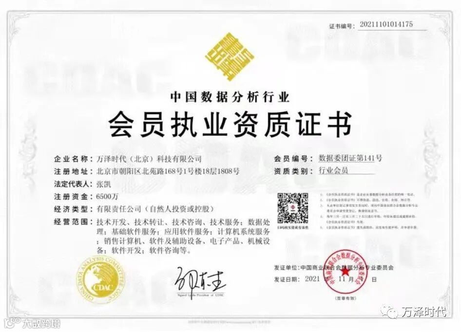 导读:近日,万泽时代申请加入中国商业联合会数据分析专业委员会,获得批准,成为该专委会会员单位。为公司后续在数据分析