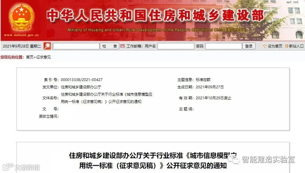 根据住房和城乡建设部标准定额司《关于开展<城市信息模型(CIM)平台—基础平台技术规范>等7项标准编制工作的函》(建司局函标〔2020〕26号),我部组织中国城市规划设计研究院等单位起草了行业标准《城市信息模型应用统一标准(征求意见稿)》(见附件),现向社会公开征求意见。有关单位和公众可通过以下途径和方式提出反馈意见: